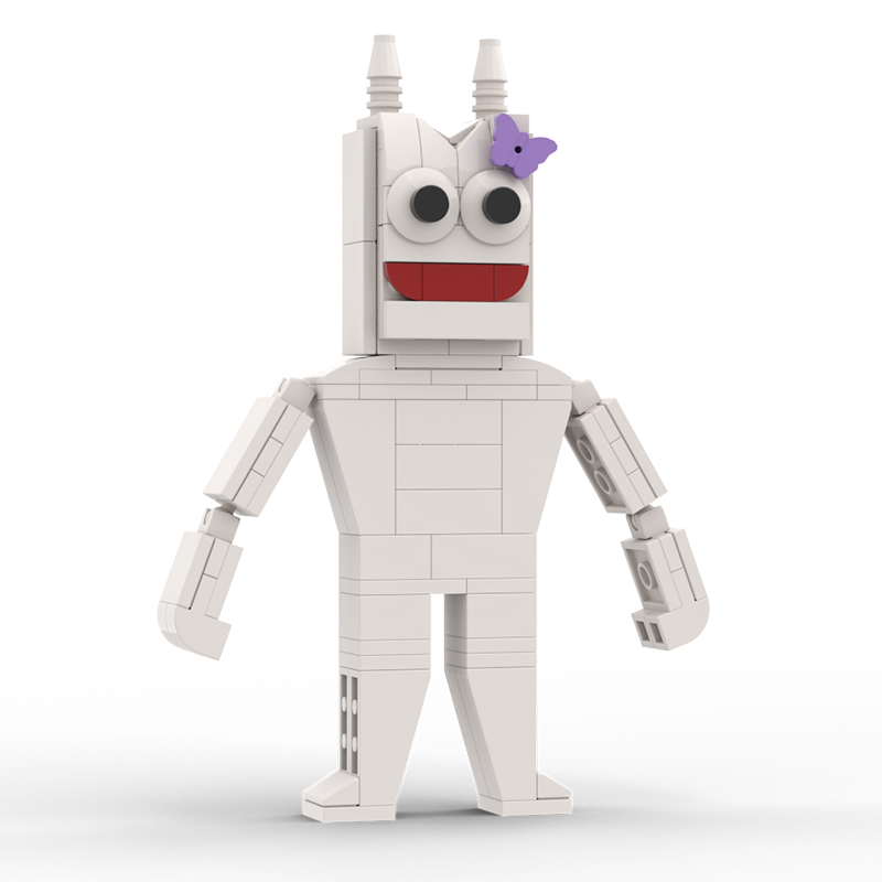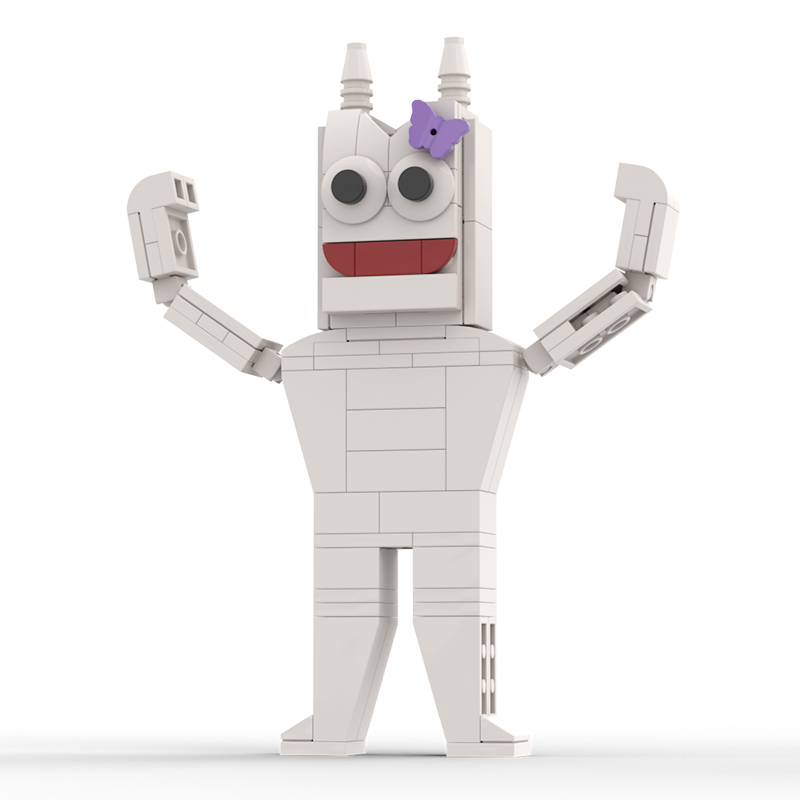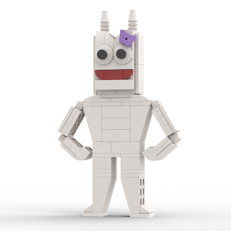 The character’s face is big, with large, expressive eyes. There are additional decorative elements around the character, including a butterfly bow, that add to the whimsical and playful design of the character.